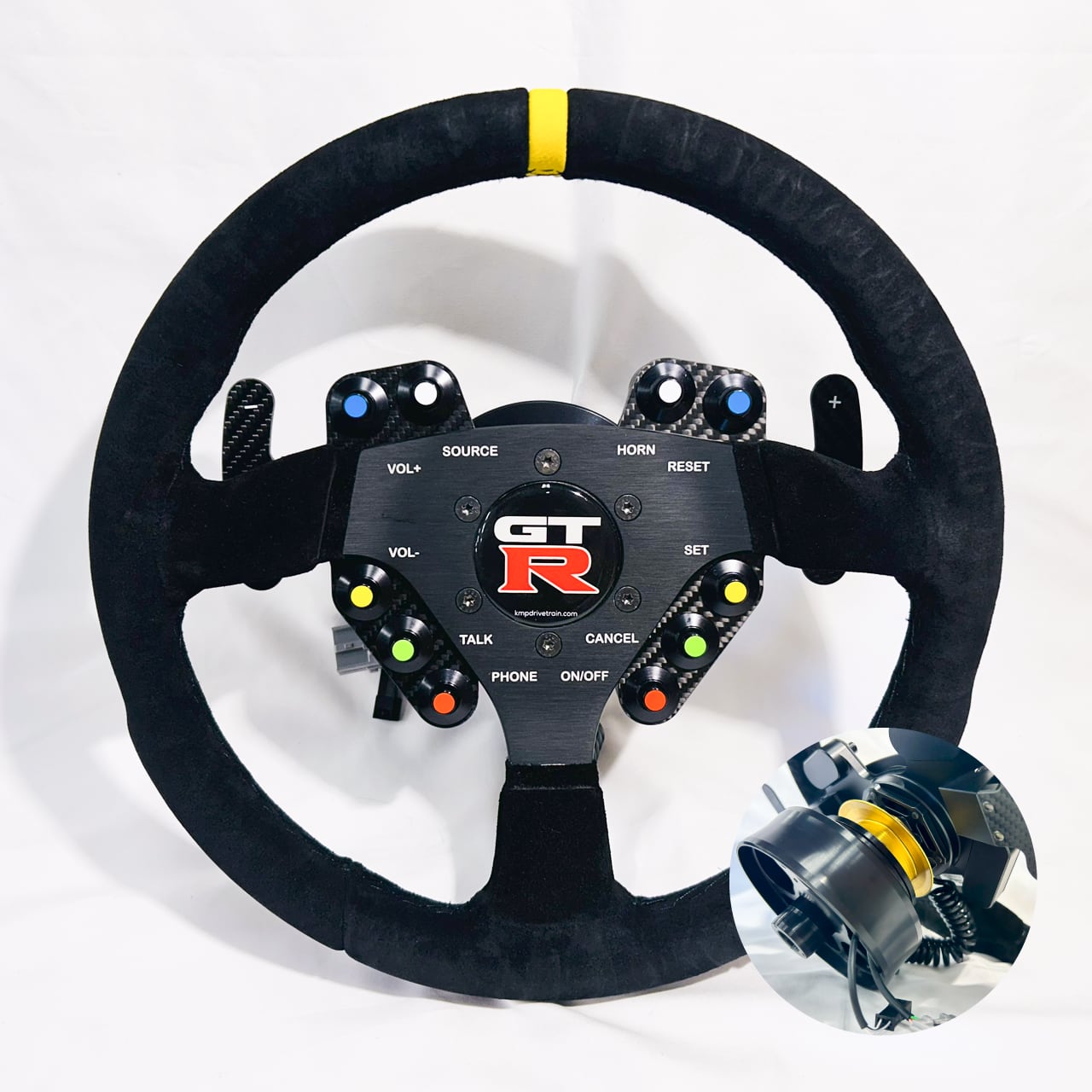 5GT-R純正ステアリングからスイッチ類を移設し、カプラーオンで装着可能なレーシングステアリングホイールです。